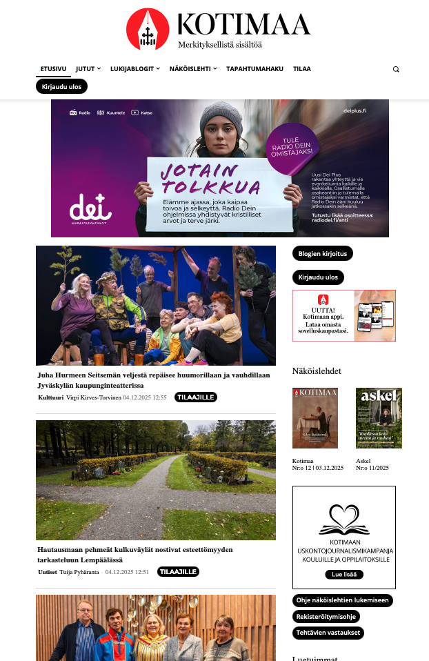 Kotimaa on Suomen johtava kirkollisen alan vaikuttaja, jonka avulla tavoitat kirkon päättäjät ja luottamushenkilöt maanlaajuisesti.