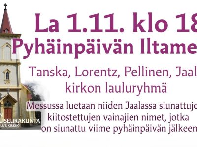 La 1.11. klo 18 Pyhäinpäivän Iltamessu Jaalan kirkosta.