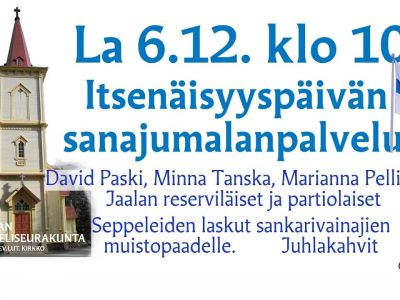 La 6.12. klo 10 Itsenäisyyspäivän jumalanpalvelus kirkossa