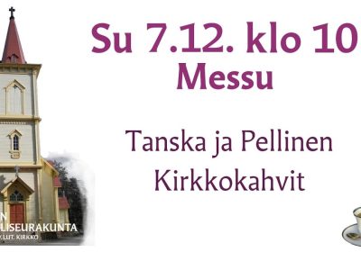 Messu (2. adventtisunnuntai) su 7.12. klo 10.00