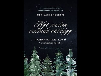 Kuusamon musiikkiopiston Taivalkosken toimipisteen joulukonsertti 15.12.2025 klo 18