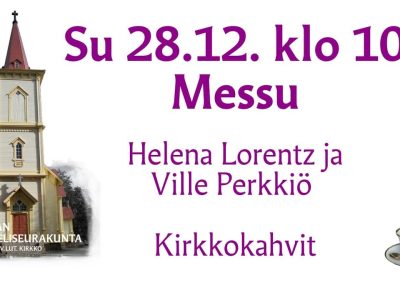 Messu su 28.12.2025 klo 10 Keskuskirkosta. Tervetuloa!