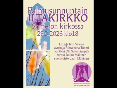 Palmusunnuntain iltakirkko Someron kirkossa 29.3.2026 kello 18.