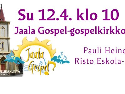 Su 12.4. klo 10 Jaala Gospel-gospelkirkko Jaalan kirkosta.