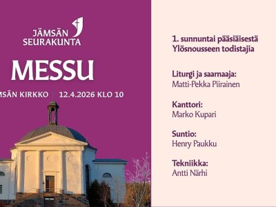 Messu su 12.4.2026 klo 10 Järvenpään kirkossa