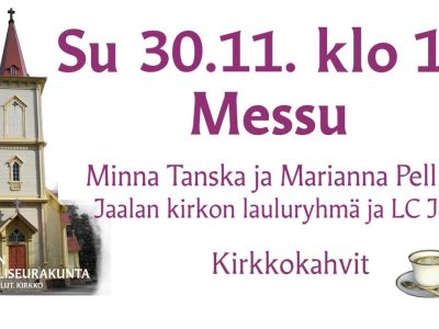 Su 23.11. klo 10 Messu Jaalan kirkosta