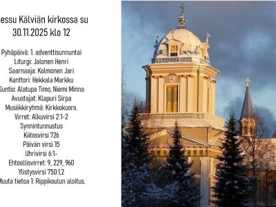 Messu Kälviän kirkossa su 30.11.2025 klo 12