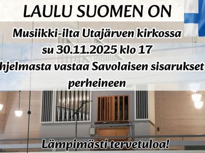Laulu Suomen on -musiikki-ilta Utajärven kirkossa 30.11.2025 klo 17