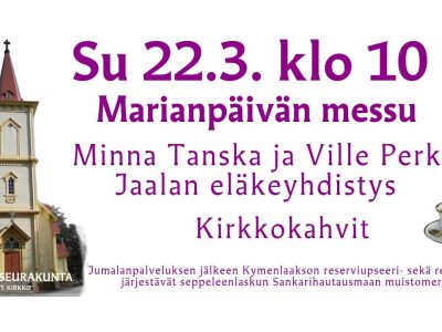Su 22.3. klo 10 Marianpäivän messu Jaalan kirkosta.