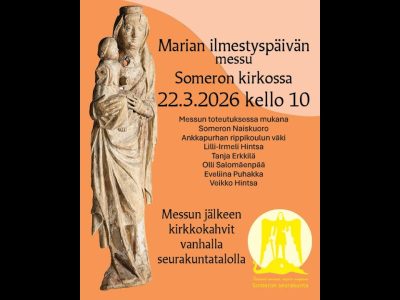 Marian ilmestyspäivän messu Someron kirkossa 22.3.2026 kello 10.