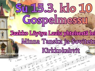 Su 15.3. klo 10 Gospelmessu Jaalan kirkosta.