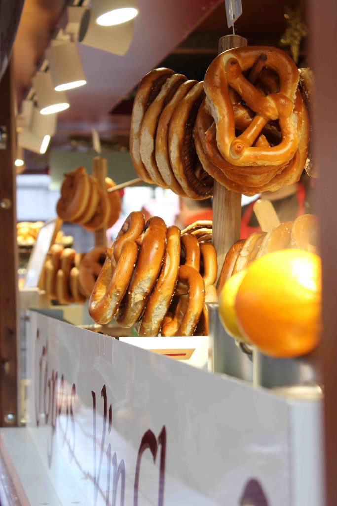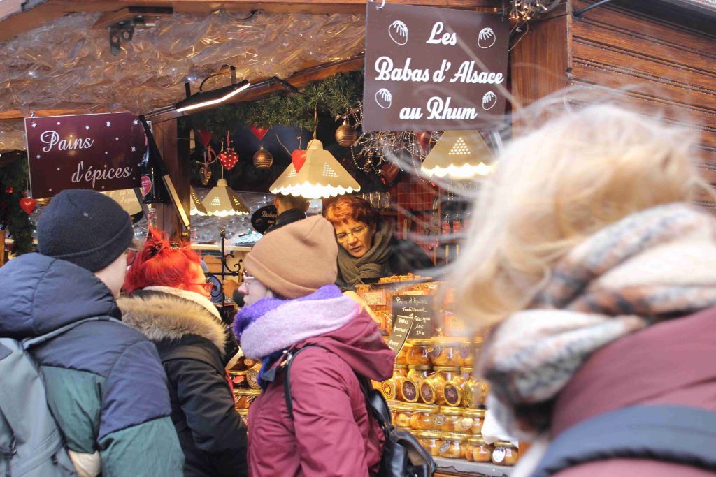 Paikallisista Alsacen alueen ruoista maistella saa pretzeleitä eli rinkeleitä, joita on tarjolla suolaisena tai makeana. Lämpimistä ruoista tarjolla on parissa kojussa perinteistä ruokaa, joka sisältää hapankaalia ja erilaisia lihoja tai kaloja.