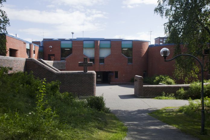 Hervantaan Pietilät suunnittelivat kokonaisen alueen, jonka suunnitteluun he saivat inspiraatiota antiikin kylpylöistä. Kirkko sijaitsee samassa rakennuksessa kaupungin vapaa-ajankeskuksen kanssa. Kuva: Aava Anttinen