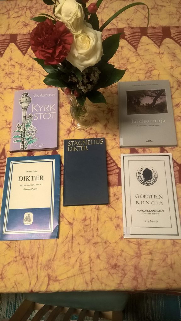 Huhtikuun 9. päivä vietämme Mikael Agricolan päivää ja suomen kielen päivää. Tämän kunniaksi yllä kuva runokirjoista, jotka luin kahdeksan vuotta sitten lauantaina 24.3.2018.