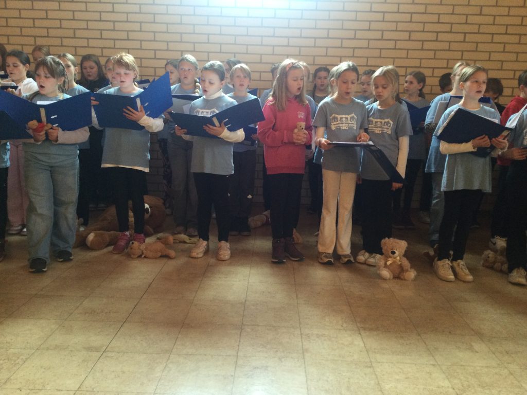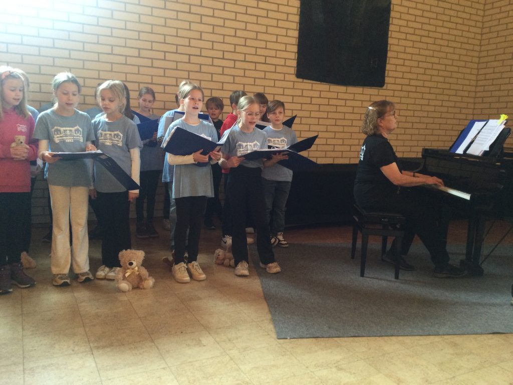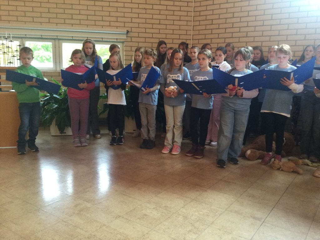 Kirkonmäen koulun lapsikuoro laulaa Someron seurakuntakeskuksessa pidetyssä eläkeläisten juhlassa