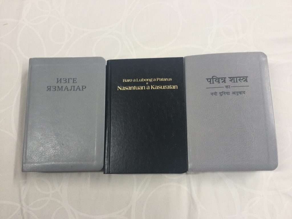 Vasemmalta tataariksi, ilokoksi ja hindiksi