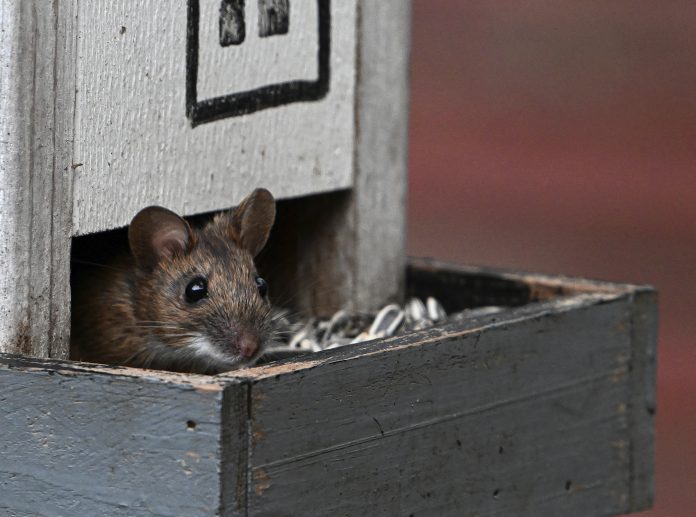 Metsähiiri on Etelä-Suomessa varsin yleinen, hehtaarilla saattaa elää jopa 100 yksilöä. Se tulee talvisin rakennuksiin ja löytää syötävää vaikka lintujen ruokintapaikoilta, kuten kuvan metsähiiri. Kuva: Martti Santakari