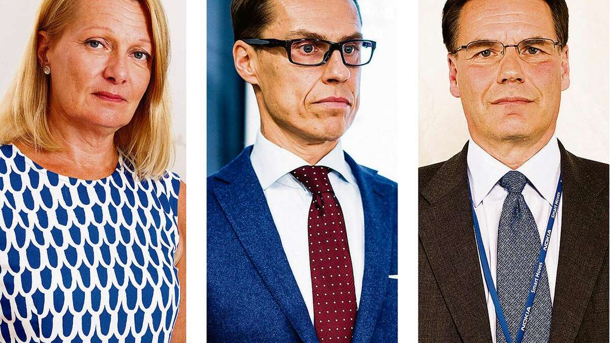 Kuvat: Lenita Toivakasta: Matti Karppinen; Alexander Stubbista: Valtioneuvosto; Olli-Pekka Kallasvuosta: Otavamedia/Lehtikuva/Petri Kaipiainen. Kuvankäsittely: Gun Damén