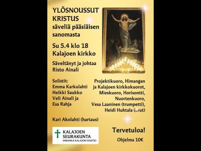 Ylösnoussut Kristus, säveliä pääsiäisen sanomasta Su 5.4 klo 18.00 Kalajoen kirkossa