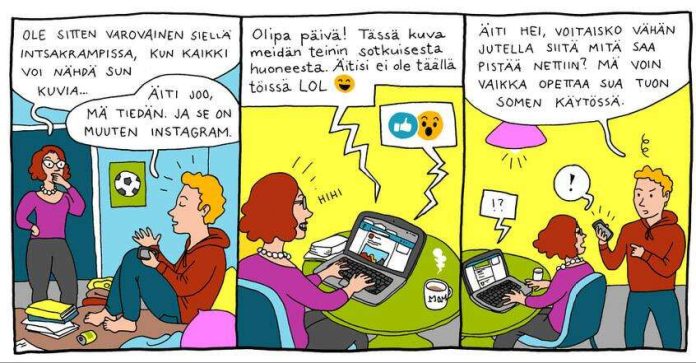 Lähes puolet 13–17-vuotiaista vastaajista arvioi, että aikuiset eivät aina tiedä, miten toimia sosiaalisessa mediassa. Noin 60 prosenttia ajatteli, että vanhemmat saattavat ymmärtämättömyyttään julkaista kuvia tai tietoja, joita lapset eivät halua julkaistavan.