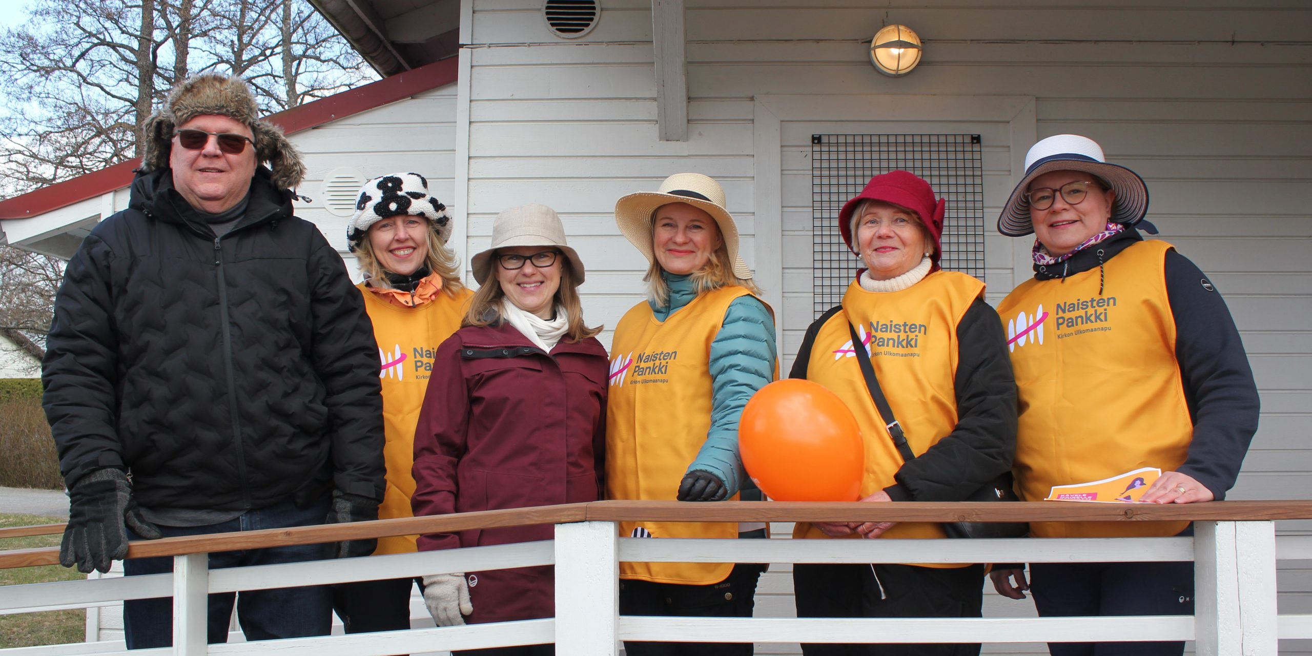 Takatalven myötä Lohjanjärveltä puskee hyytävän kylmä tuuli. Se ei kuitenkaan iloista tunnelmaa haittaa. Kymmenittäin Naisten Pankin lohjalaisia aktiiveja ja ystäviä on kerääntynyt Aurlahden rantaan.