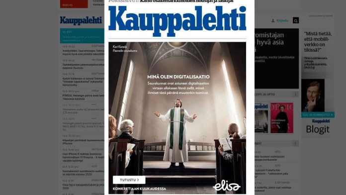 – Tämä ei ole toki tarkoitus. Teksti ”Minä olen digitalisaatio” vertautuu paitsi Elisan mainokseen myös Jeesuksen sanoihin, joissa hän sanoo olevansa vaikkapa elämän leipä tai lammasten ovi. Se siis viittaa monitulkintaisesti Jumalaan.