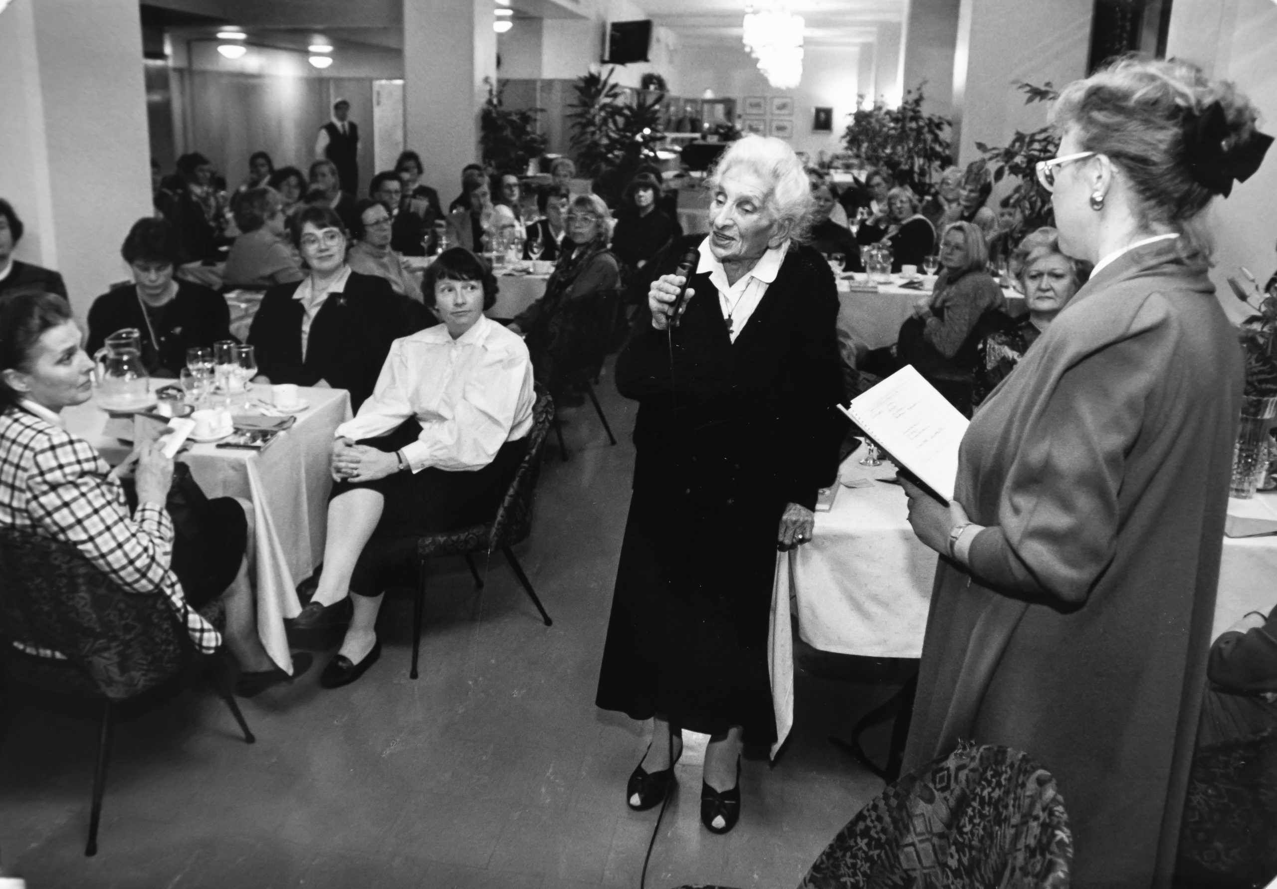 Tälle viikolle arkistonhoitaja on valinnut kuvan naisvaltaisesta tilaisuudesta. Kuka tunnistaa kuvassa olevia henkilöitä tai tilanteen?
