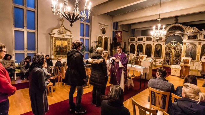 Kuva: Jukka Granström. Katolinen messu Hämeenlinnan ortodoksikirkossa.