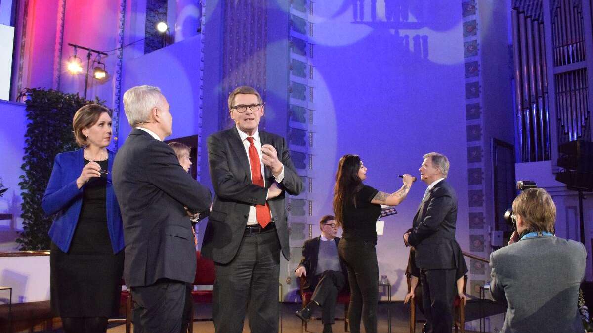 Presidenttiehdokkaita tentattiin Kallion kirkossa sunnuntai-iltana. Tenttaajina olivat MTV:n uutis- ja ajankohtaisohjelmien vastaava päätoimittaja Merja Ylä-Anttila ja politiikan ja talouden toimituksen päällikkö Jussi Kärki. Vaalikeskustelu lähetettiin suorana lähetyksenä MTV3-kanavalla.
