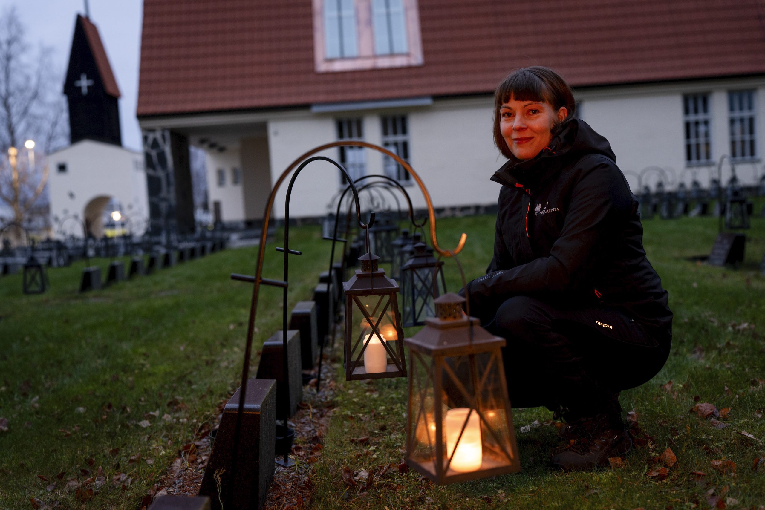 Seurakuntamestari Anne Laurila on ollut alalla jo kuusi vuotta. — Työssäni on parasta hautajaiset. Haluan ainutkertaisessa tilanteessa palvella mahdollisimman hyvin ihmisiä, kunnioittaa heidän suruaan ja ohjata tarvittaessa. Pidän muutenkin hautausmaalla työskentelystä, hän sanoo. Kuva: Jaani Föhr